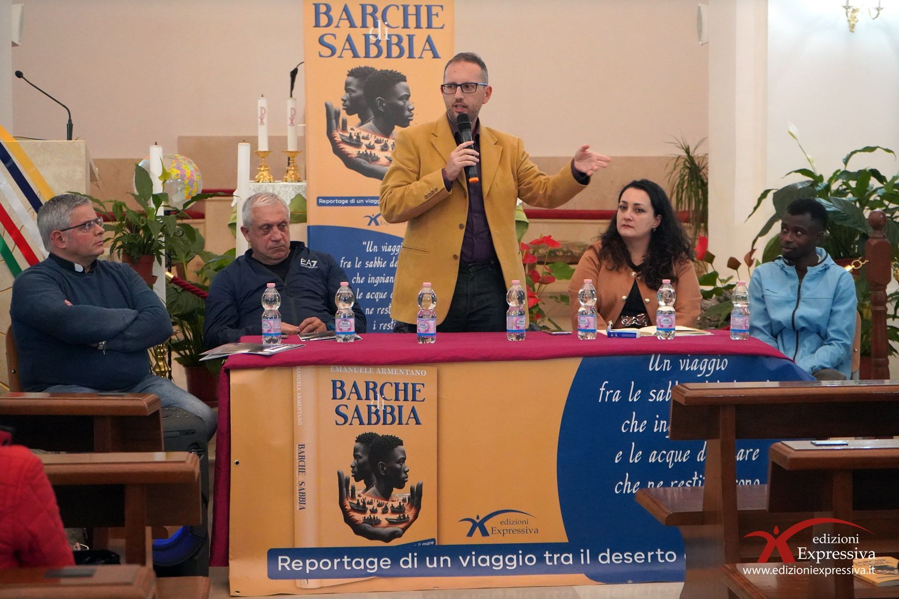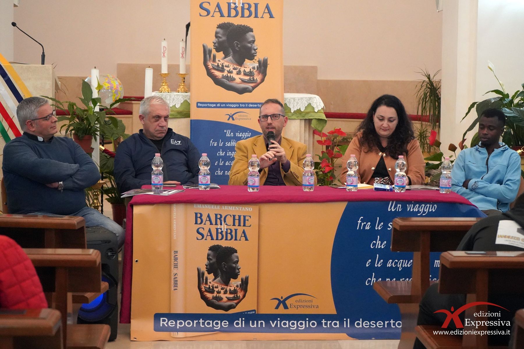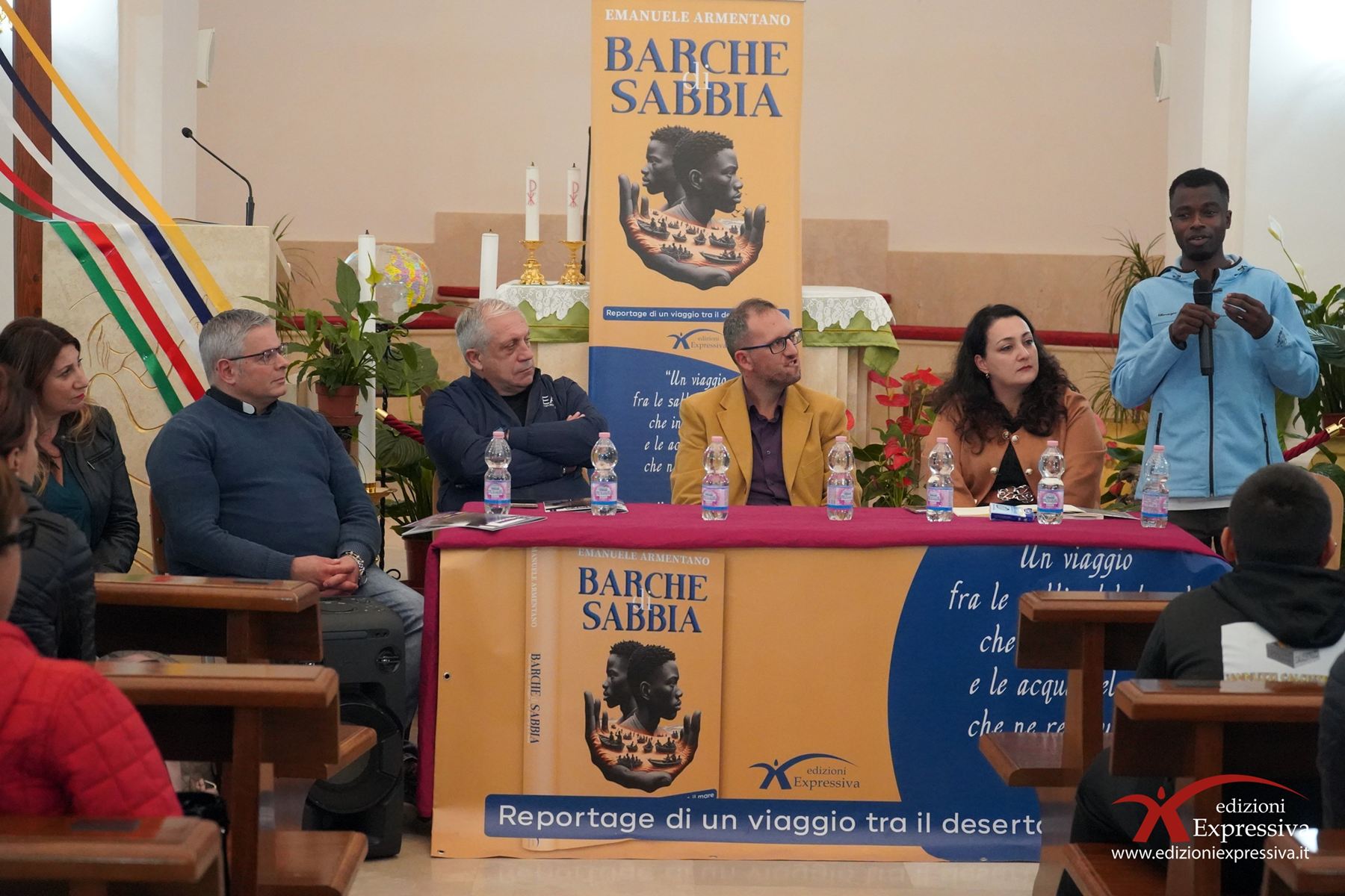Il tour di presentazione del libro Barche di Sabbia di Emanuele Armentano ha fatto tappa a San Lorenzo del Vallo, venerdì 24 ottobre, presso la chiesa di San Lorenzo Martire, dopo aver registrato un’ampia partecipazione di pubblico. L’incontro ha visto la presenza dei protagonisti del reportage, Abubacarr Conteh e Ousman Susso, rendendo il confronto particolarmente intenso e diretto. L’evento si è aperto con i saluti istituzionali del sindaco Vincenzo Rimoli, del parroco don Vincenzo Miceli e della presidente della Pro Loco Rosanna Viciconte. A moderare e dialogare con l’autore è stata l’assessore Chiara Diana, che ha guidato il dibattito sui temi centrali dell’opera. L’incontro ha rappresentato un ulteriore momento di riflessione e sensibilizzazione sul fenomeno delle migrazioni, rafforzando il valore culturale e sociale del tour letterario dell’autore spezzanese.
