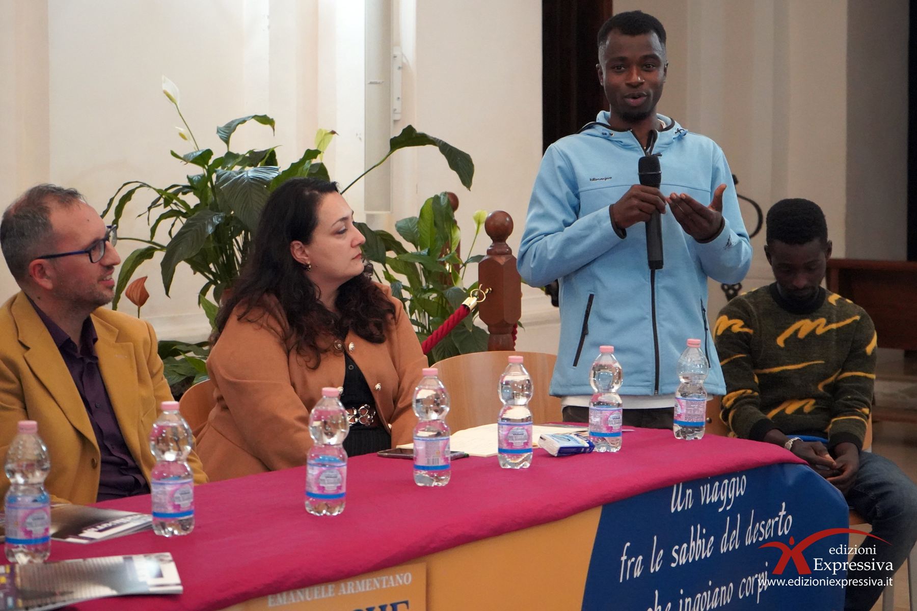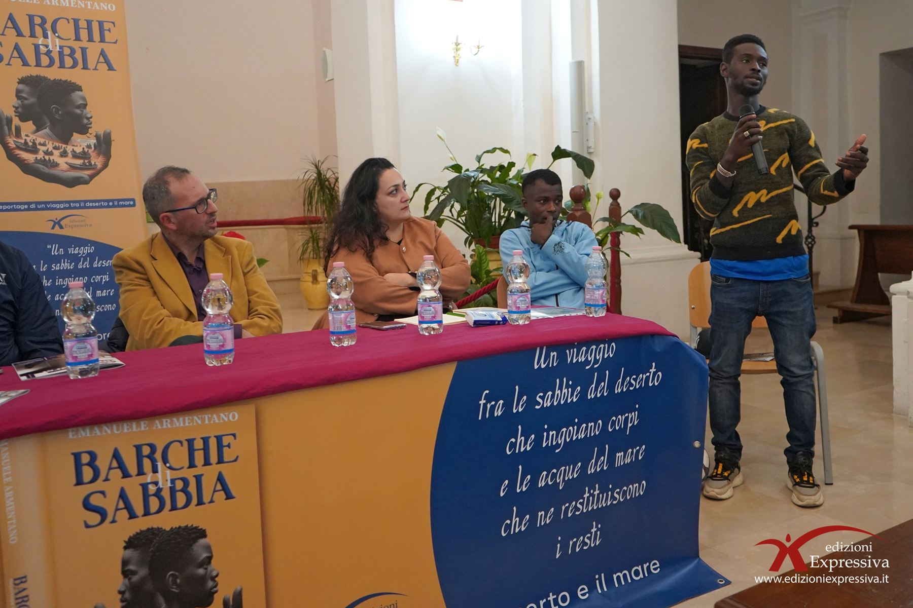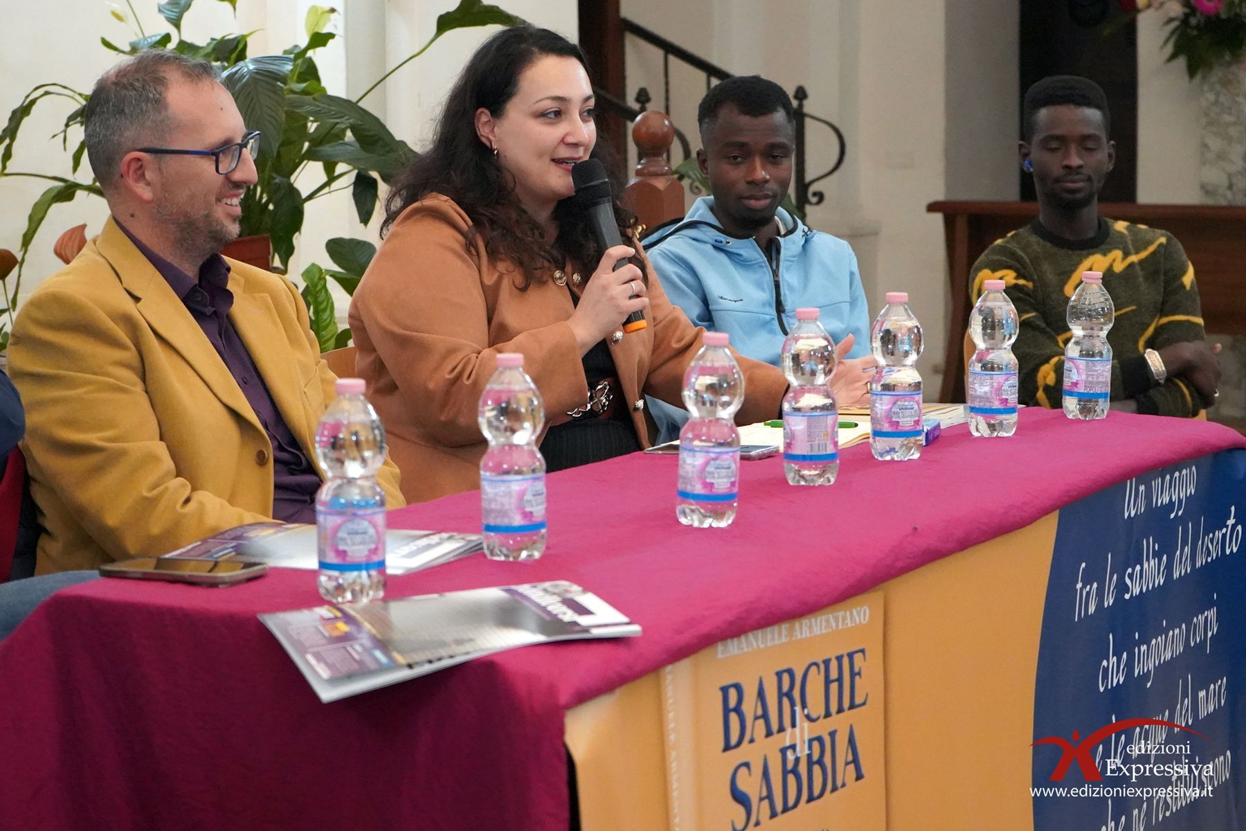 Il tour di presentazione del libro Barche di Sabbia di Emanuele Armentano ha fatto tappa a San Lorenzo del Vallo, venerdì 24 ottobre, presso la chiesa di San Lorenzo Martire, dopo aver registrato un’ampia partecipazione di pubblico. L’incontro ha visto la presenza dei protagonisti del reportage, Abubacarr Conteh e Ousman Susso, rendendo il confronto particolarmente intenso e diretto. L’evento si è aperto con i saluti istituzionali del sindaco Vincenzo Rimoli, del parroco don Vincenzo Miceli e della presidente della Pro Loco Rosanna Viciconte. A moderare e dialogare con l’autore è stata l’assessore Chiara Diana, che ha guidato il dibattito sui temi centrali dell’opera. L’incontro ha rappresentato un ulteriore momento di riflessione e sensibilizzazione sul fenomeno delle migrazioni, rafforzando il valore culturale e sociale del tour letterario dell’autore spezzanese.