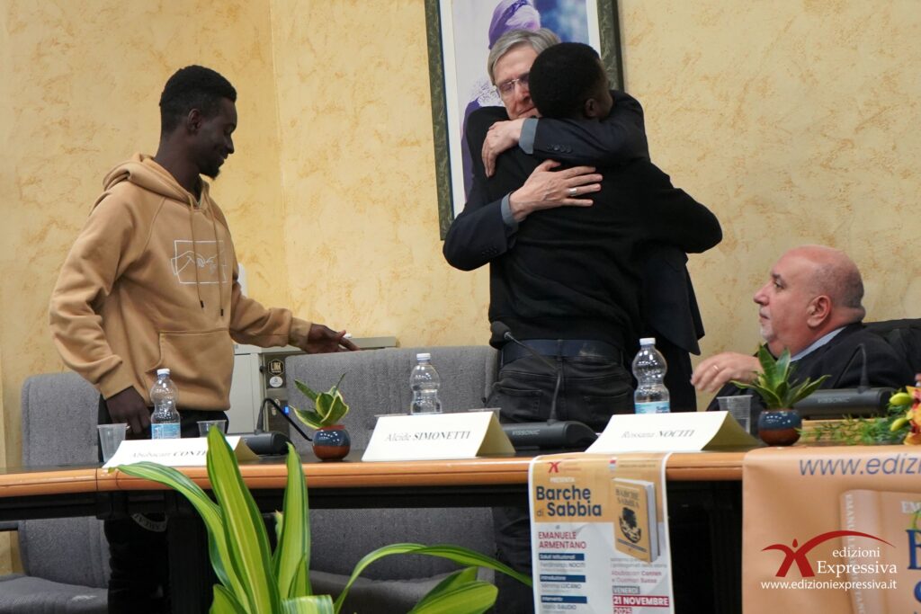 Dopo tanta attesa, l’incontro di venerdì 21 novembre a Spezzano Albanese, molto partecipato e ricco di contenuti, ha ospitato la nuova tappa del tour letterario di Emanuele Armentano, che ha presentato il suo libro “Barche di sabbia”, con mons. Francesco Savino e i protagonisti del volume, Abubacarr Conteh e Ousman Susso. L’incontro è stato moderato dall’assessore alla Cultura Rossana Nociti, con i saluti del sindaco Ferdinando Nociti e l’analisi critica del libro a cura di Mario Gaudio. Armentano ha raccontato la sua emozione: «Ho portato tanti scrittori a battesimo; oggi tocca a me». Dopo aver motivato l’assenza di Mimmo Lucano per impegni istituzionali, ha ringraziato l’Amministrazione: «La sinergia è fondamentale anche quando si parte da idee diverse -ha detto-. Continuerò a impegnarmi per il territorio, oggi con voi al governo e domani con chi verrà». È seguito il dialogo con l’avvocato Simonetti sulla costruzione del libro; Armentano ha ricordato le parole dei due giovani gambiani definendoli i suoi eroi: «La nostra storia rappresenta quella di tutti i giovani che affrontano lo stesso viaggio». Sono diversi i temi chiave trattati, dal razzismo al legame tra Abubacarr e Ousman, dalla paura del diverso alle difficoltà vissute. Alla domanda di Simonetti sull’esperienza per arrivare in Italia: «Ne è valsa la pena?», Abubacarr ha risposto: «No. Se tornassi indietro non rifarei il viaggio. È come se fossi tornato in Africa». Infine, mons. Savino ha aperto con una provocazione, indicando una bambina in sala: «Che mondo stiamo preparando per lei?», ponendo l’accento sul debito economico ed ecologico che i bambini non sanno di avere. Ha ricordato che l’Arbëria è una prova storica dell’integrazione: «Se è stata vera per gli albanesi, non può esserlo anche per gli africani o altre etnie?». Ha richiamato il valore della memoria: «Abbiamo dimenticato di essere stati immigrati anche noi». Ciò che preoccupa Savino come pastore è la “negazione dell’altro” e il “narcisismo patologico” che oggi caratterizza la società. «Che fine ha fatto la fraternità?». Rimarcando eventi storici quali la caduta del Muro di Berlino e la tragedia di Gaza, come metafora di disastro antropologico, ha sottolineato la necessità di costruire un nuovo umanesimo volto a integrare il prossimo. Chiaro è stato l’invito a diffidare della propaganda, intesa come “negazione della realtà”. Puntando sull’etica della responsabilità rispetto a quella della convenienza, ha espresso rabbia per la situazione degli stranieri, riferendosi ad Abubacarr: «Mi vergogno perché ha detto che non tornerebbe in Italia. Gli immigrati sono il luogo dove toccare la carne viva di Cristo e il Mediterraneo un cimitero senza lapide, dove non faccio più il bagno. Il libro di Emanuele è un atto controcorrente, contro la propaganda». Poi ha chiesto trenta secondi di silenzio, ha abbracciato i due protagonisti gambiani e ha concluso tra applausi scroscianti: «Vorrei essere come voi».
