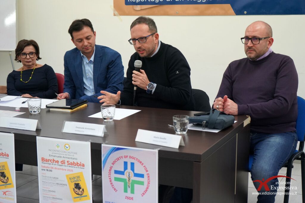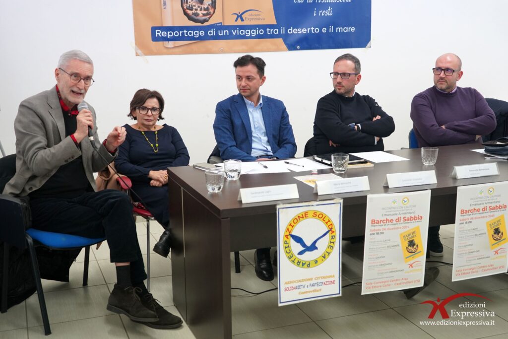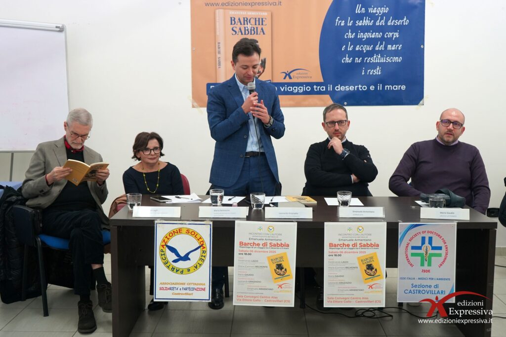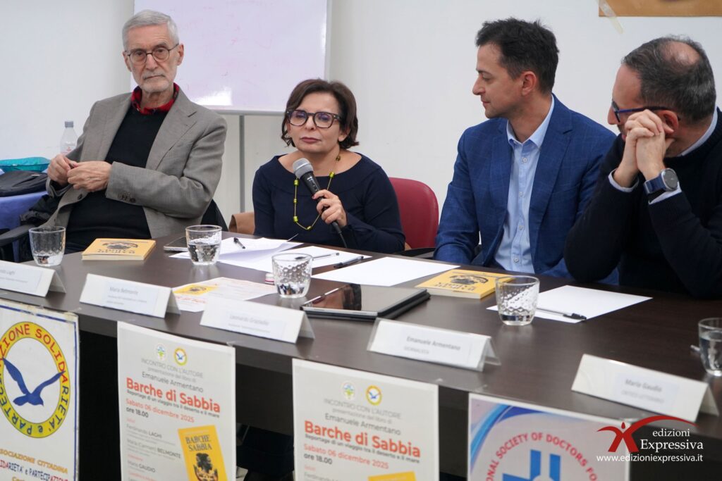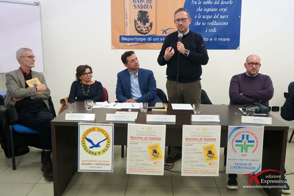 Si è svolta a Castrovillari sabato 6 dicembre, presso la Sala Convegni del Centro Alas, la nuova tappa del tour di presentazione del libro “Barche di Sabbia” di Emanuele Armentano. L’iniziativa, inserita nel ciclo culturale “Incontro con l’autore”, è stata promossa dalle associazioni “Solidarietà e Partecipazione Castrovillari” e “ISDE Italia – Medici per l’Ambiente, sezione di Castrovillari”, con dirittodicronaca.it media partner. Dopo i saluti istituzionali del consigliere regionale Ferdinando Laghi e del presidente ISDE Maria Carmen Belmonte, l’incontro ha visto l’intervento del critico letterario Mario Gaudio, con la moderazione degli interventi a cura dell’avvocato Leonardo Graziadio.