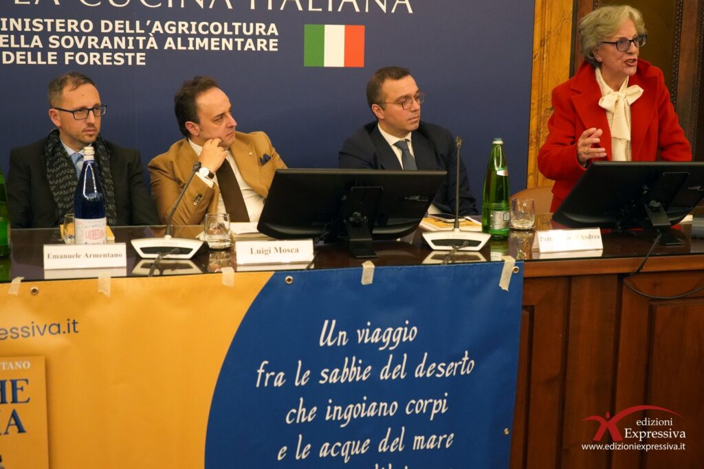 Si è svolta nella mattinata di lunedì 15 dicembre, nella prestigiosa Sala Cavour (detta Parlamentino) del Ministero dell’Agricoltura, della Sovranità Alimentare e delle Foreste (MASAF), la presentazione del libro “Barche di Sabbia – Reportage di un viaggio tra il deserto e il mare” di Emanuele Armentano, edito da Edizioni Expressiva.