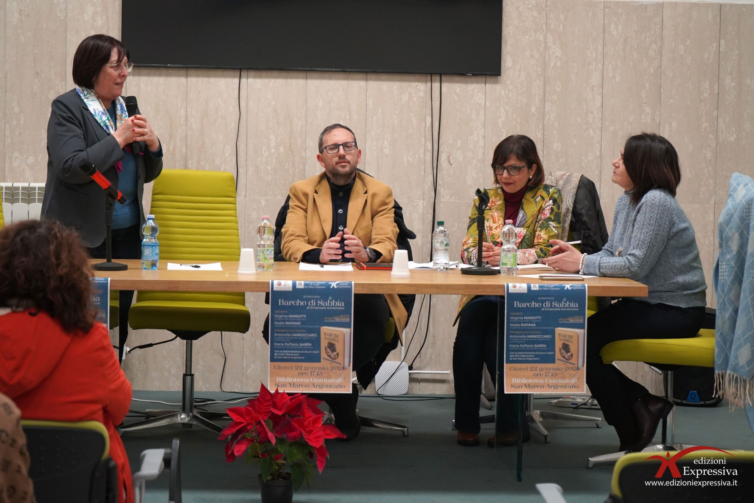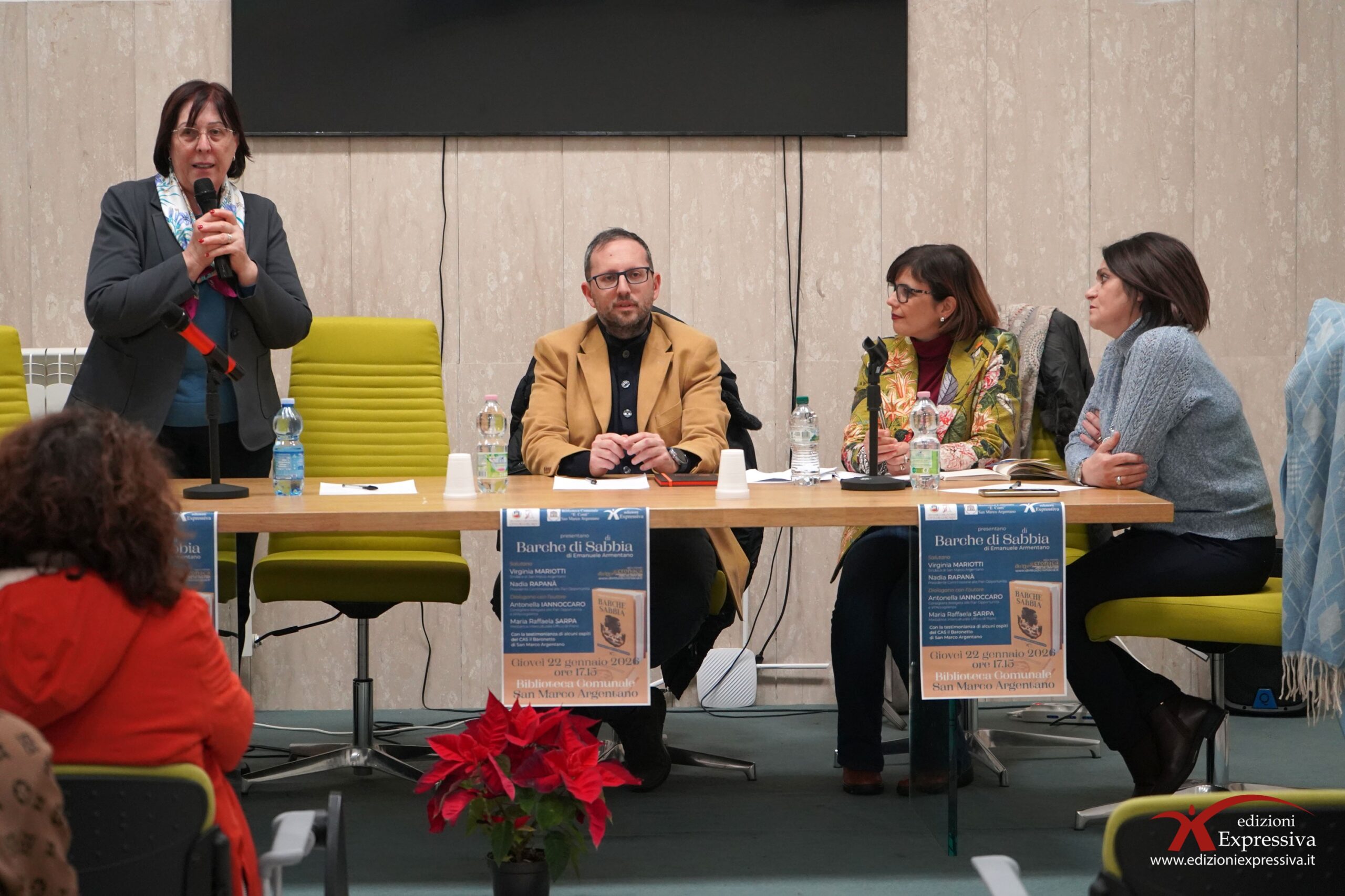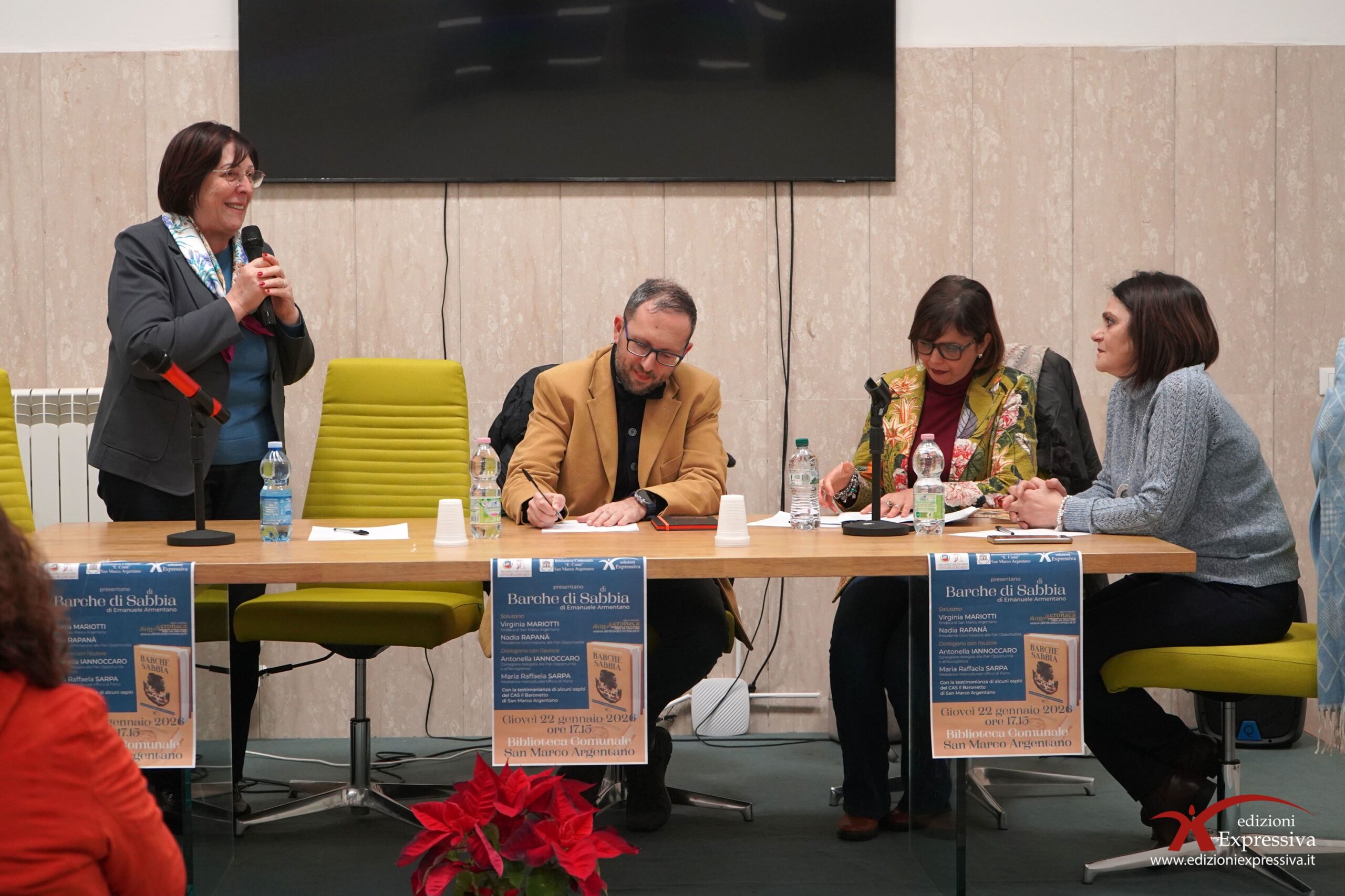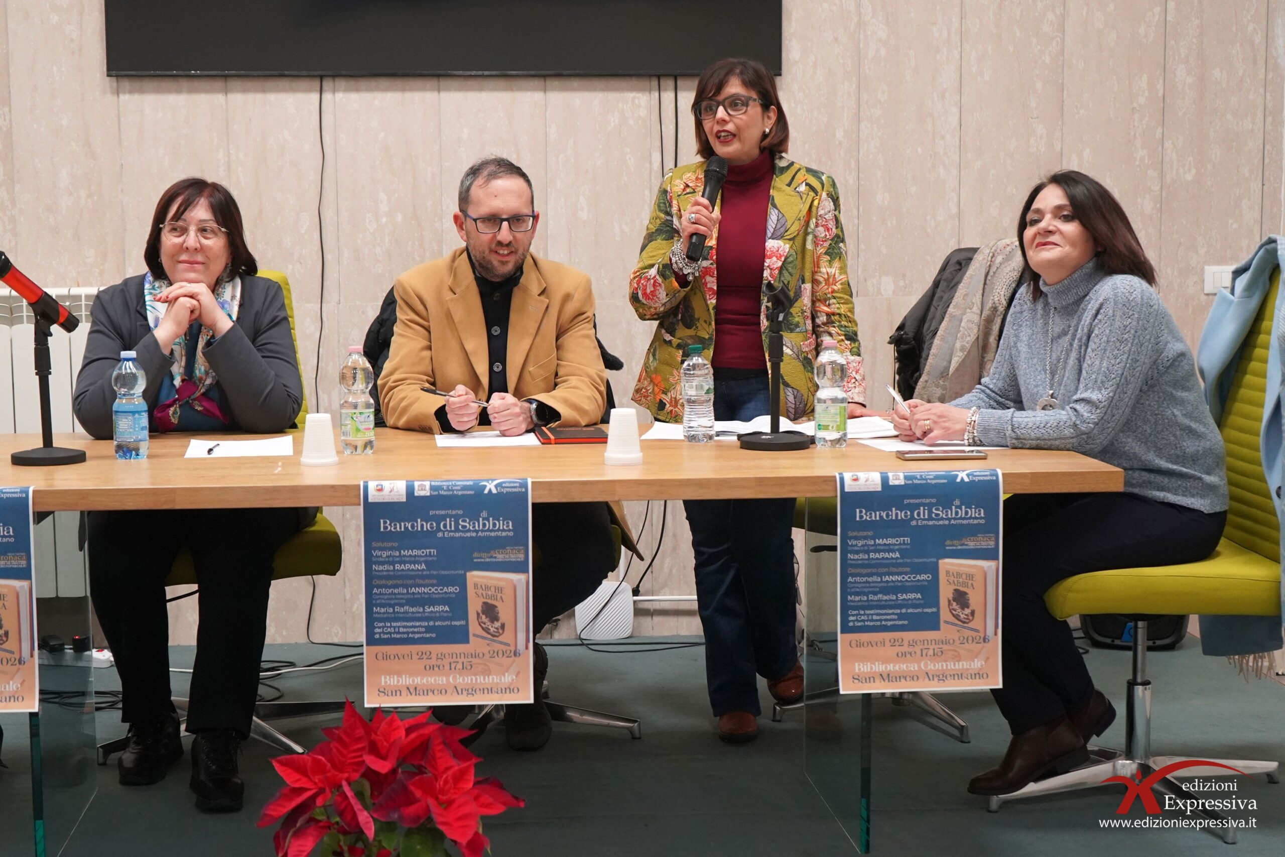 Nel pomeriggio di ieri, giovedì 22 gennaio, la Biblioteca Comunale di San Marco Argentano ha ospitato la presentazione del libro “Barche di Sabbia” di Emanuele Armentano. Un evento riuscito, con una buona partecipazione di persone attente che hanno seguito fino alla fine le riflessioni sui temi del reportage. Molto toccanti le testimonianze degli ospiti del CAS Il Baronetto. Con il loro intervento, hanno ribadito le difficoltà che gli immigrati incontrano al loro arrivo in Europa. La storia dei due protagonisti, Abu e Susso, continua a farsi strada e a lasciare un segno nel cuore del pubblico, che con emozione ed empatia ascolta, dialoga e riflette. Il reportage si conferma così un atto di sensibilizzazione, con l’obiettivo ormai storico di guardare chi arriva da lontano con occhi gentili.
